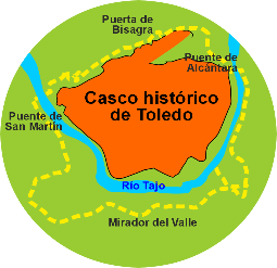 La ciudad vieja de Toledo se sitúa en uno de los meandros del río Tajo, cuyo importante caudal ha sido fuente de vida, bastión defensivo y marco incomparable para los pobladores de este magnífico promontorio natural fortificado.