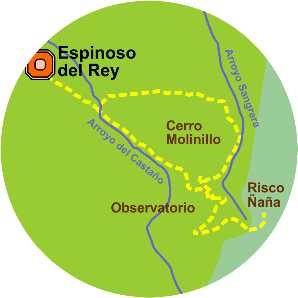 Desde Espinoso del Rey, el recorrido consiste en encaramarse a los montes situados al este del pueblo para alcanzar el Risco Ñaña, un espectacular mirador que ofrece una amplia panorámica del frondoso entono circundante.