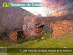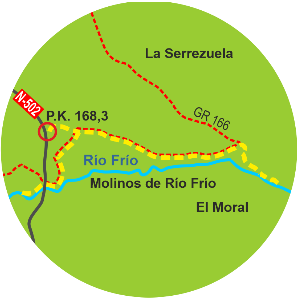 El caso del río Frío de Sevilleja de la Jara fue emblemático porque llegaron a concentrarse más de dos decenas de molinos en un corto tramo del cauce, un verdadero complejo harinero. El sendero propuesto nace para el recuerdo de aquellos ingenios que hábilmente manejaban esforzados molineros hasta mediados del s. XX y de los que hoy apenas si quedan sus restos.