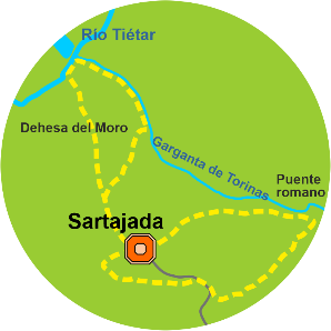 Alojada en el interior del Valle del Tiétar, Sartajada nos ofrece dos alternativas en un mismo recorrido, por un sendero que se extiende como las alas de una mariposa a ambos lados del pueblo.